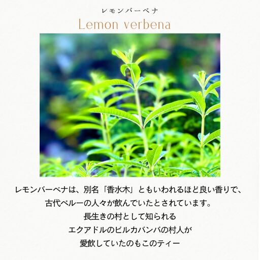 「ハーブティーの女王」と呼ばれるレモンバーベナは、レモンの香りを放つ癒しのハーブ。稀少なオーガニックローズとの色と香りのハーモニーをどうぞお楽しみくださいませ!
