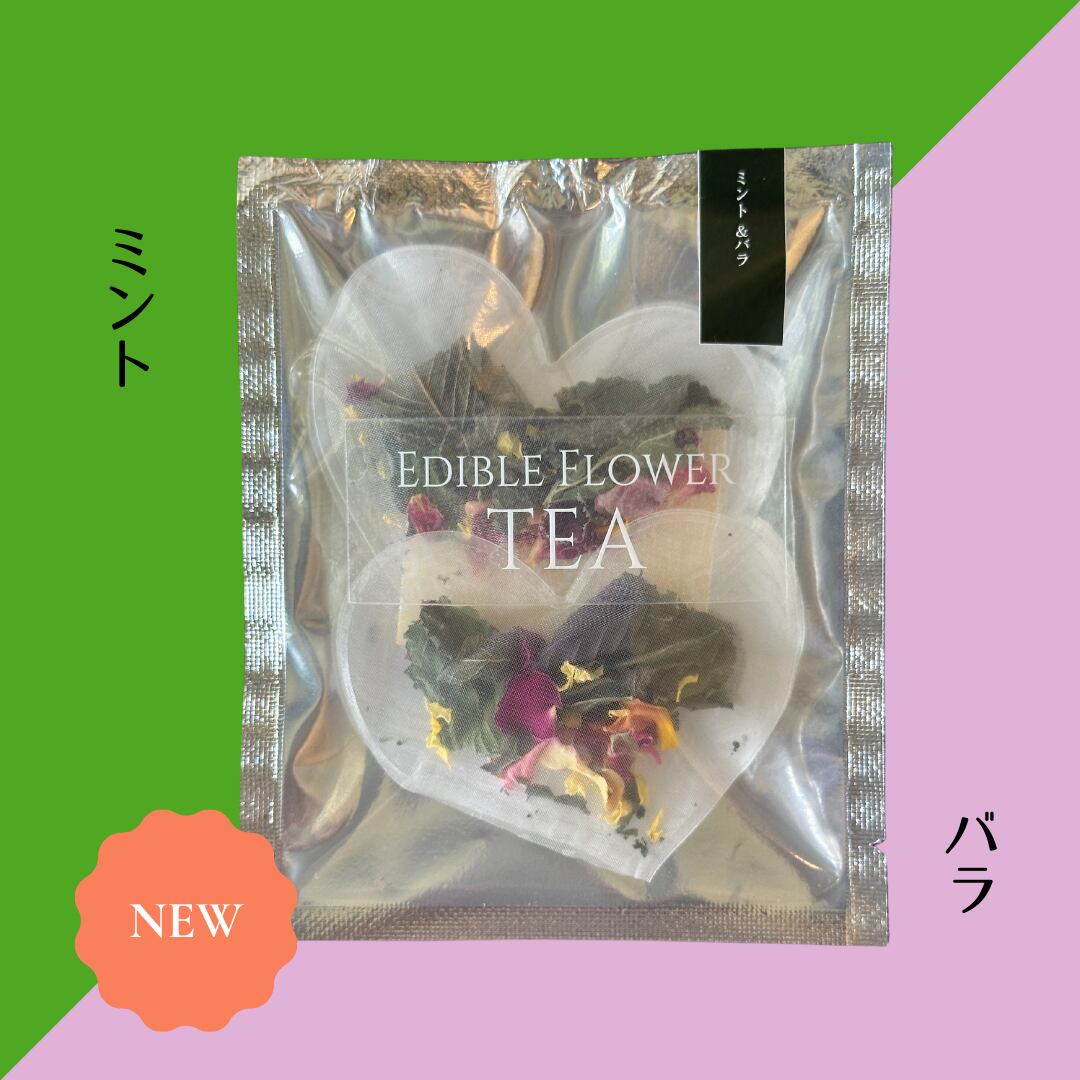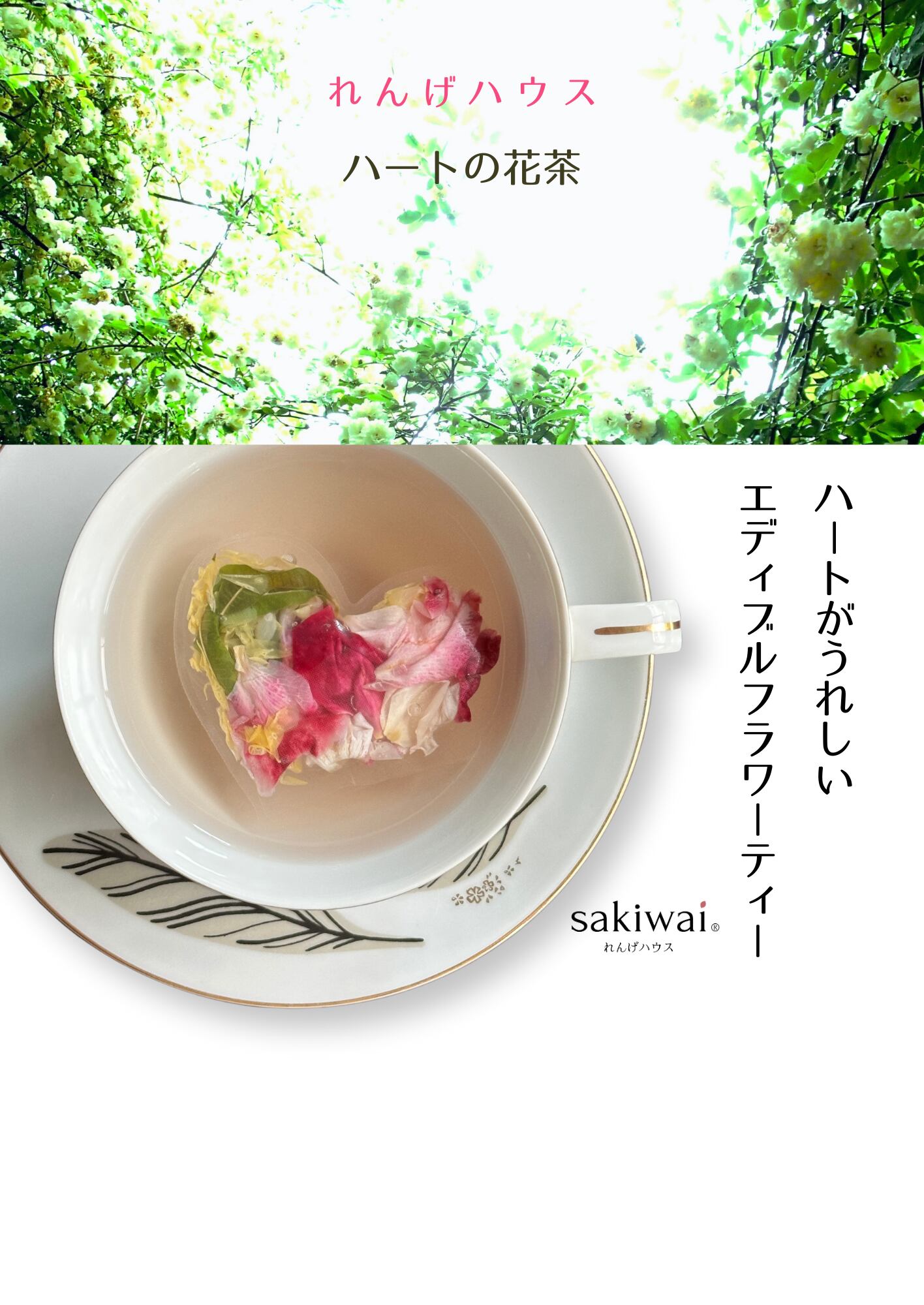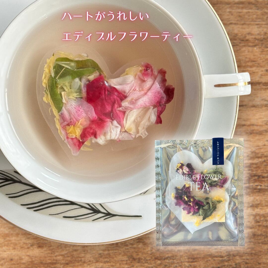 ハートの花茶【ミント&バラ】は、れんげハウスの庭で年間を通じてガーデナーが育てている植物のみで作られたエディブルフラワーティーです。