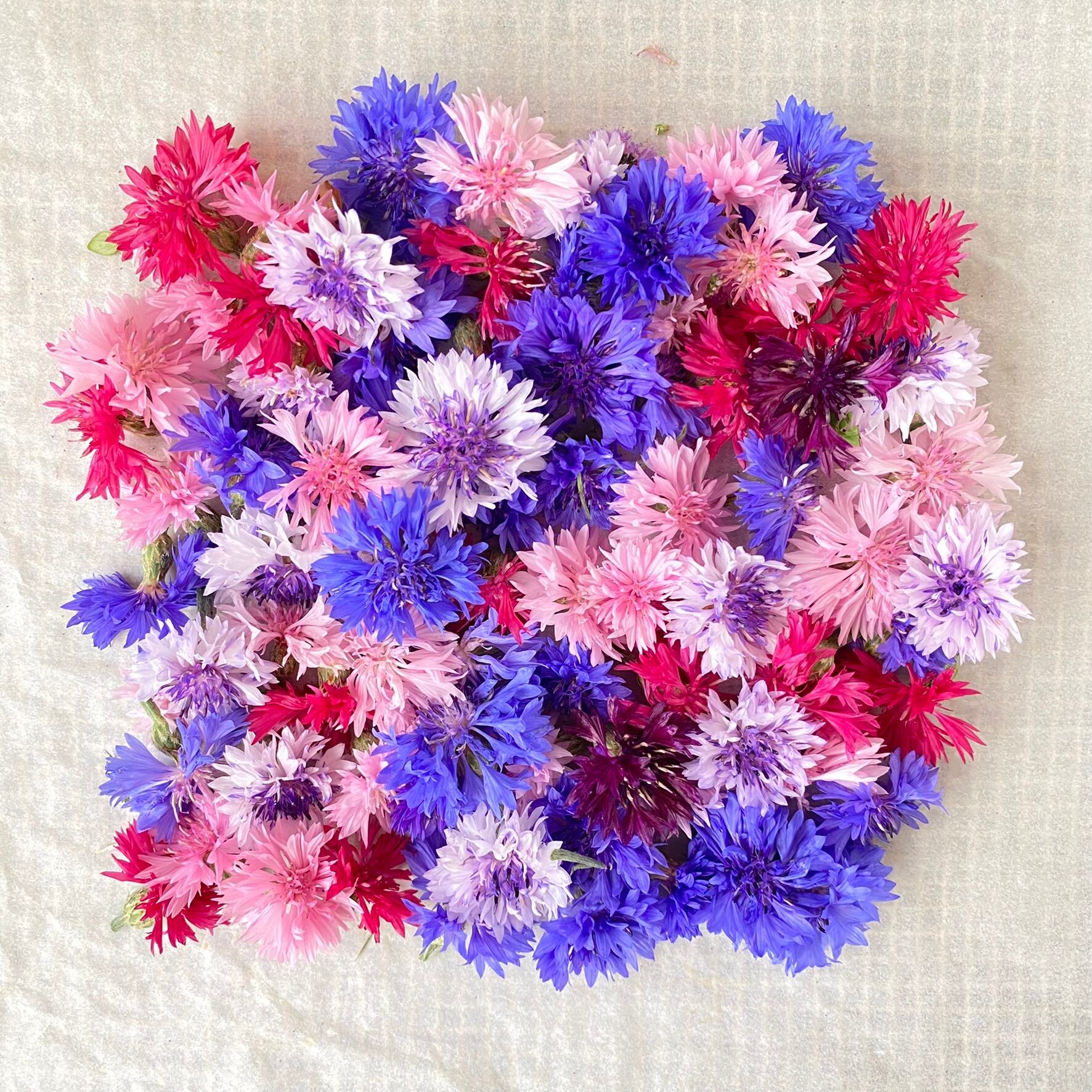 「ハーブティーの女王」と呼ばれるレモンバーベナと3種類のエディブルフラワーをセットにいたしました。